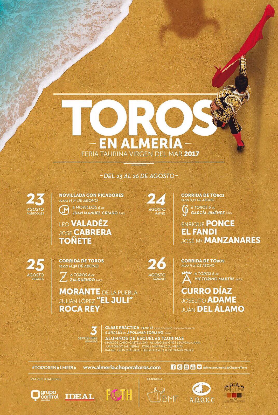 Con ese cartel que vemos se ha presentado la feria de Almería 2017. Mañana procederemos a valorar el abono, pero hoy, además de las combinaciones, dejamos una entrevista que ha publicado LA VOZ DE ALMERÍA con carácter previo a la presentación. Para leerla solo hay que pinchar AQUI.